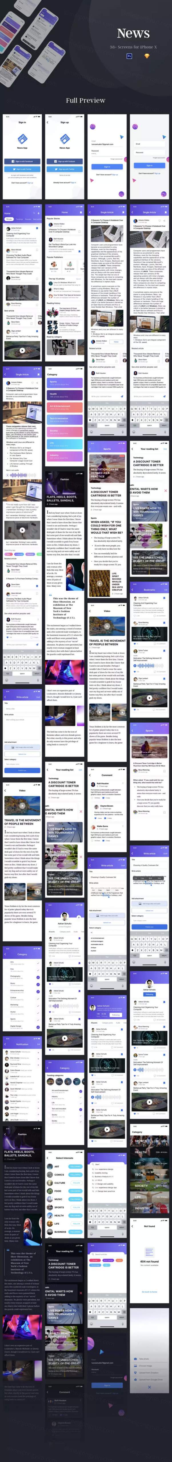 时尚现代高端新闻资讯类APP UI KITS For iPhone X