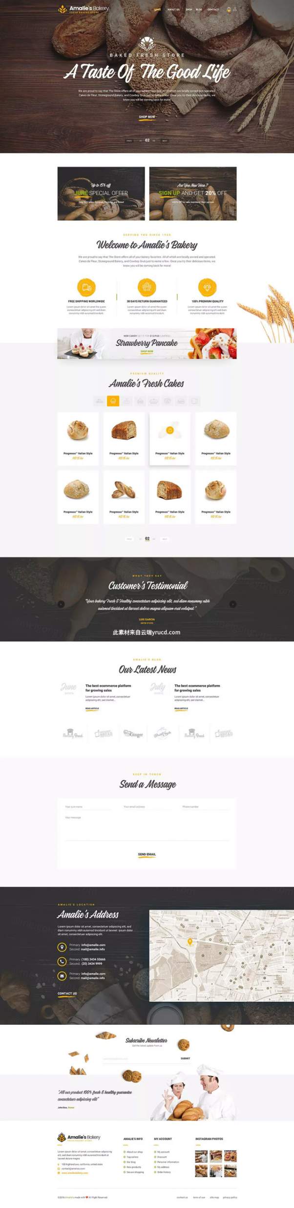 图穷联素材库 » 时尚高端的面包店蛋糕店食品相关业务的优质Onepage设计模板