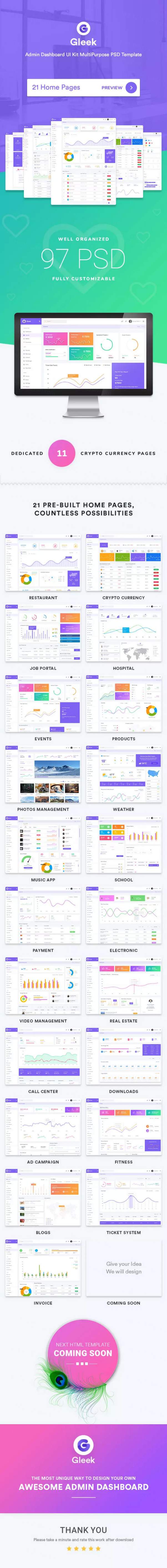时尚简约多功能的后台管理仪表盘PSD设计模板