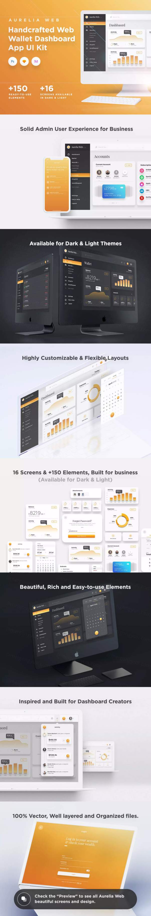 多功能简易好用的电脑网站后台仪表盘套装模板[PSD,Sketch,XD