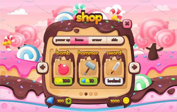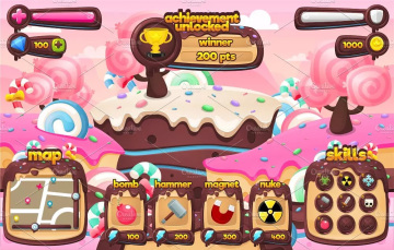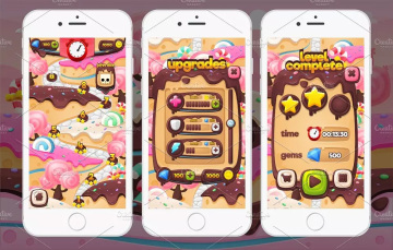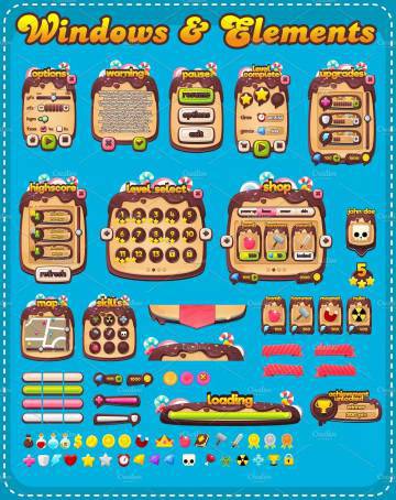 图穷联素材库 » 可爱的巧克力糖果游戏界面UI模板下载[ai,eps,cdr,svg,p