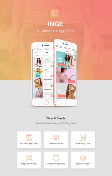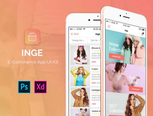 一款女性购物APP UI Kit打包下载[psd , xd]