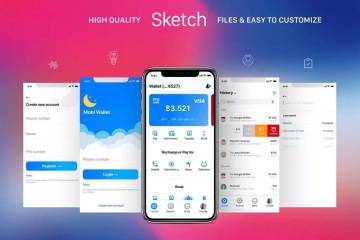 分享一套金融行业APP UI KITS打包下载[sketch],50多个功能界面,包含身份验证(登录,注册和忘记密码),主页,交易历史,搜索,手机充值,转账金额,礼品,配置文件和设置等。