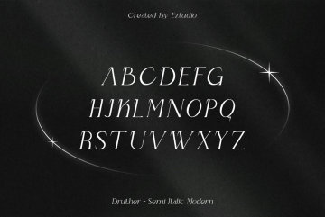 Druther是包括大写字母、小写字母、数字、连字和大量标点符号的字体。现代而奢华的外观。为海报、网页设计、品牌、插图、徽章和其他一些作品而创建。