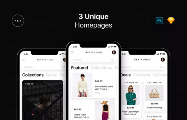 图穷联素材库 » 时尚简约的电商APP UI KITS套件sketch+PSD