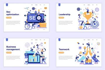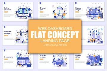 高品质的时尚扁平化banner着陆页欢迎页设计模板,概念传染媒介设计模板。Seo优化,网站开发,应用开发,远程教育,学习过程,学习,头脑风暴,智慧,在线培训,数字营销,会计,帐户,商业,金融,推广,品牌推广,电子商务,团队合作,电子银行,银行,购物。Web仪表板的概念。网页,网站和流动网站的概念性平的传染媒介例证。
