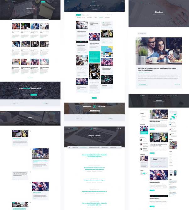 高端时尚的多功能App着陆页UI KITS,是一套完整的集合,此UI套件专为移动应用程序演示而定制,但您可以创建包含500多个组件和1500个用户界面元素的任何类型的网站,例如公司,企业,初创企业,博客和个人网站。PSD布局分层次良好,按专有名称分组,您可以轻松创建着陆页设计,只需简单地拖放块即可。SpiritApp UI Kit包含34个类别(摘要75个PSD文件)和7个预制着陆页设计,10个专业页面模板(即将推出页面,倒计时页面,维护模式和404错误页面),11个博客列表模板和超过1500个有用的UI元素7个单篇文章模板。