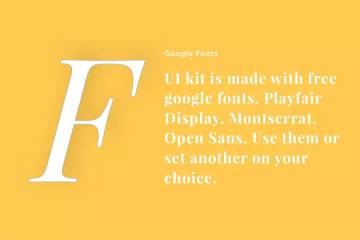 用户界面套件是由免费的谷歌字体。Playfair Display,蒙特塞拉特,Open Sans。根据您的选择使用它们或设置另一个。