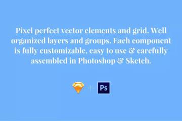 像素完美的矢量元素和网格。组织良好的图层和组。每个组件都完全可定制,易于使用并在Photoshop和Sketch中精心组装。