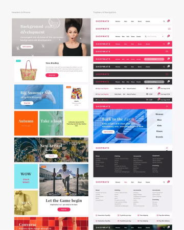 超过120个组件数百个UI元素的高端时尚多功能APP UI KITS,创建您的店铺设计,并将其组织为8个热门内容类别。