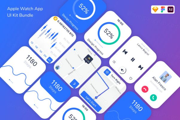 图穷联素材库 » Apple Watch手表APP应用UI设计套件 Apple Watc