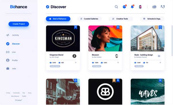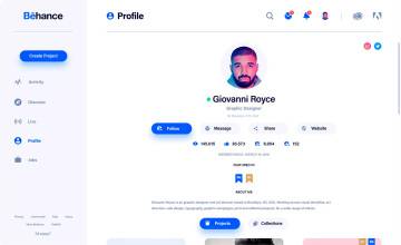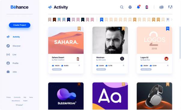 Behance APP UI/UX 重新设计包括6个PSD高质量文件,每个文件的尺寸为5106×2878(30...