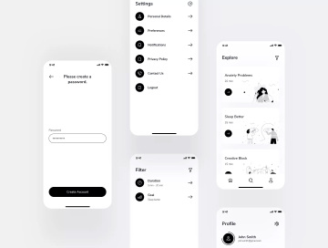 简约风格冥想APP移动应用程序UI套件