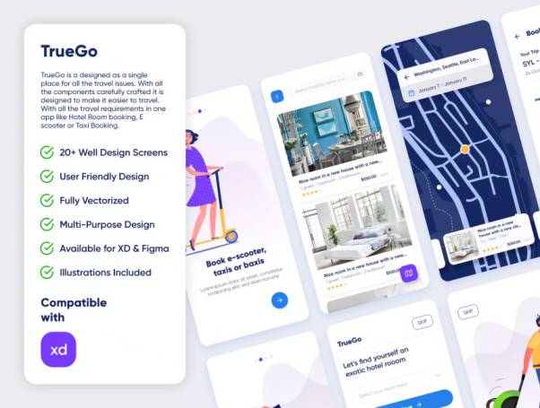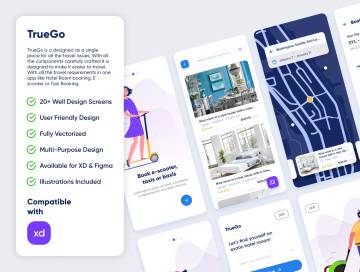 为解决所有旅行问题的旅行APP设计套件。所有组件均经过精心设计,旨在使其更易于旅行。在一个应用程序中(如酒店客房预订,E小型摩托车或出租车预订)就可以满足所有旅行需求,