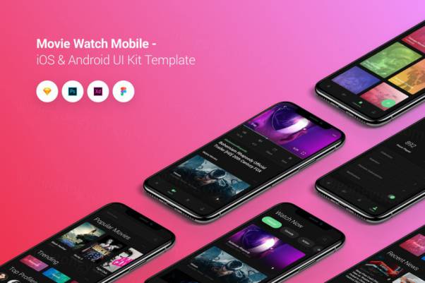 高品质的高端时尚电影移动iOS和Android APP UI KITS