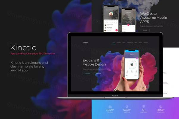 时尚高端多用途的适合APP营销网站设计模板UI KITS,模板是完全可编辑的,组织良好的图层。您可以轻松更改其颜色,形状和字体样式。