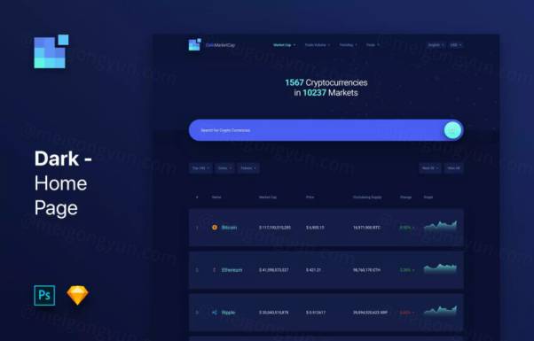 Coin Market Cap是一个网页模板,可以帮助您设计加密货币市场,审查加密货币,买入或卖出。每个屏幕都是完全可定制的,非常易于使用,并在Sketch app和Adobe PhotoShop中进行了精心分层和分组。