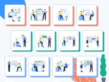 这是一个高质量且可自定义矢量插画套件。与插画匹配的主题是投资管理、增长监控、团队发展、利润计划、成就报告。对于设计师,开发人员,初创公司和设计机构加快设计过程非常有用。非常适合网站和移动UI应用程序。