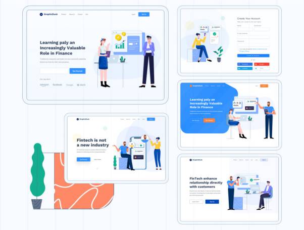 图穷联素材库 » 金融科技和投资主题矢量插画套件