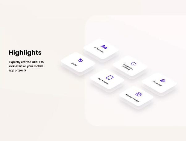 这是一款美观,独特且时尚的手机APP UI Kit。这将帮助您节省大量时间来构建移动应用程序产品。