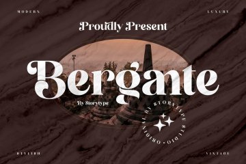 自豪地展示由 StoryType 创建的 Bergante 字体,一种具有独特风格和现代外观的装饰字体。