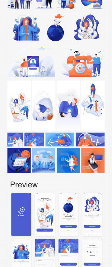 图穷联素材库 » 私人医生在线预约视频语音咨询挂号移动界面素材 .Doctor app