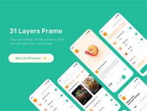 图穷联素材库 » 美食订餐外卖订购送餐移动APP界面UI素材 Foody - Food