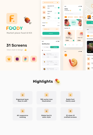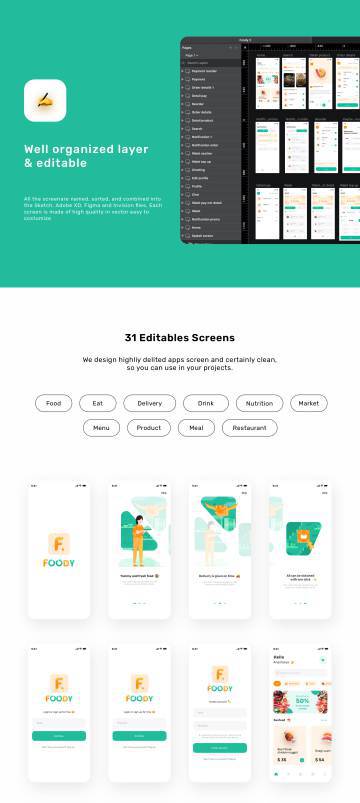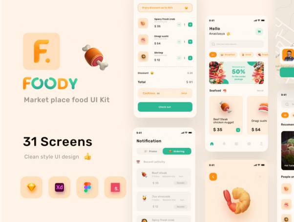 美食订餐外卖订购送餐移动APP界面UI素材 Foody - Food