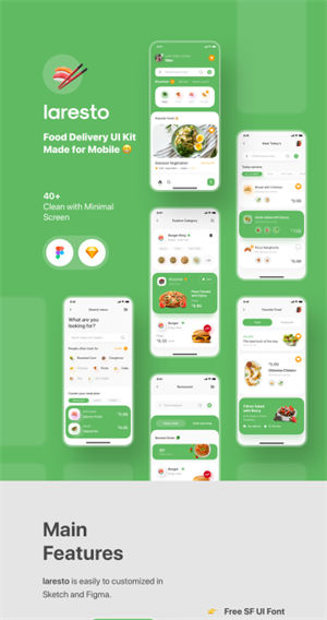 Laresto UI Kit是一个移动应用程序模板,专门用于餐厅点餐过程。