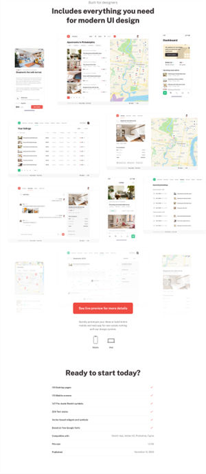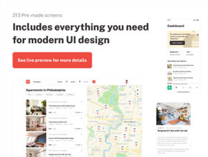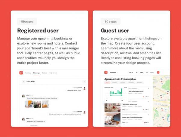 213个页面和147个UI组件,用于公寓出租和房地产预订应用程序和网站