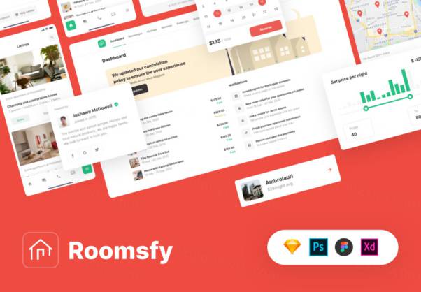Roomsfy是一个现代,干净且非常详细的UI套件。我们设计了213个漂亮的网页和移动应用程序屏幕。您可以使用我们的147组独特的UI套件组件来构建任何房地产预订移动应用程序或网站。