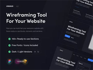 天王星-线框套件是一个线框图包,其中包含100多种深色/浅色即用型Web元素/部分。该套件的基础思想是从线框图时间问题开始的。