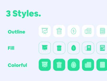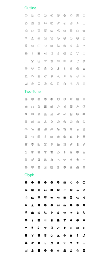 商业和金融图标集由3种样式(轮廓,字形,二音)的300个图标组成,适用于设计具有商业和金融主题的应用程序和网站。