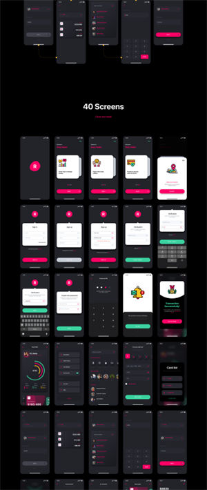 40屏幕银行,金融和加密钱包应用程序UI套件