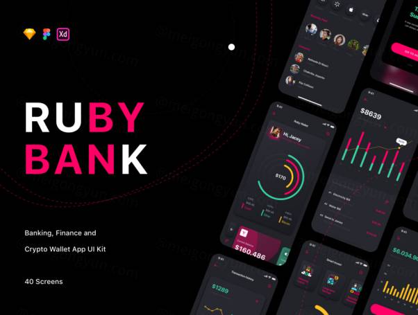 银行加密钱包消费预算理财计划移动APP界面UI素材 Ruby - Ba