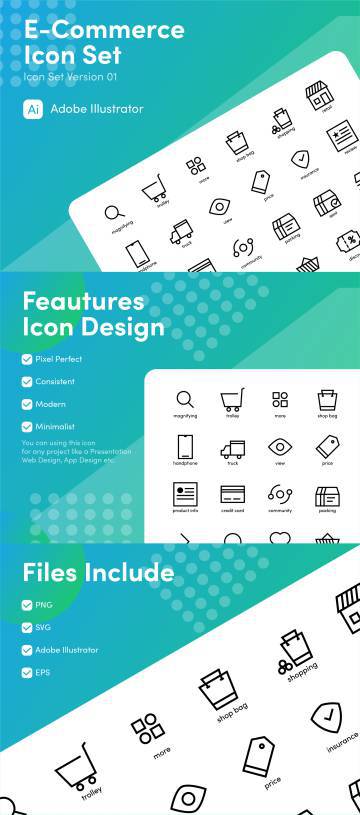 图穷联素材库 » 极简风格电子商务图标集 E-Commerce Icon Set