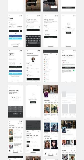 图穷联素材库 » 名人衣橱大牌在线购物移动APP界面UI素材 Findilm - Sho