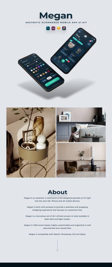 梅根(Megan)是一款美观的电子商务UI工具包,专门设计用于所有Web和平板电脑设备,iPhone和所有移动设备。