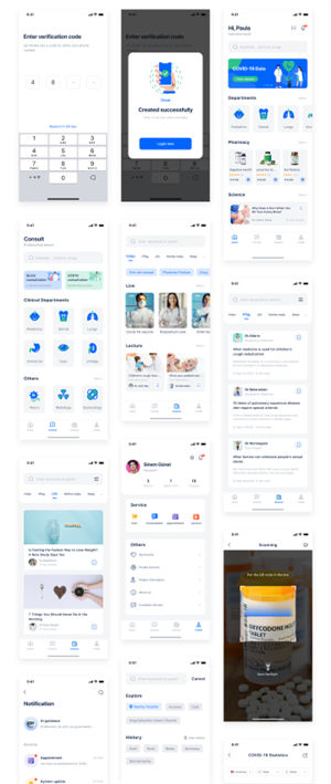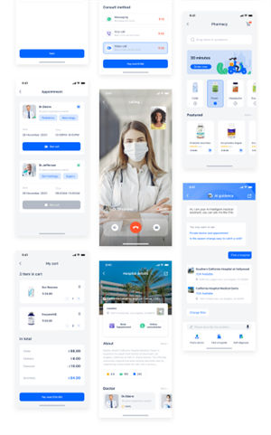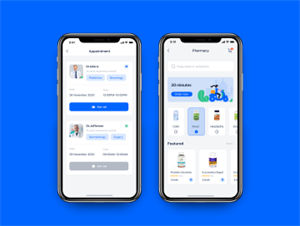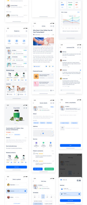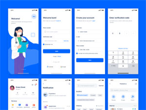 图穷联素材库 » 蓝色医疗医院在线挂号预约服务移动APP界面UI素材 Blue onli