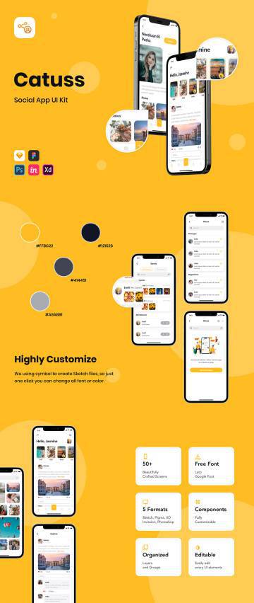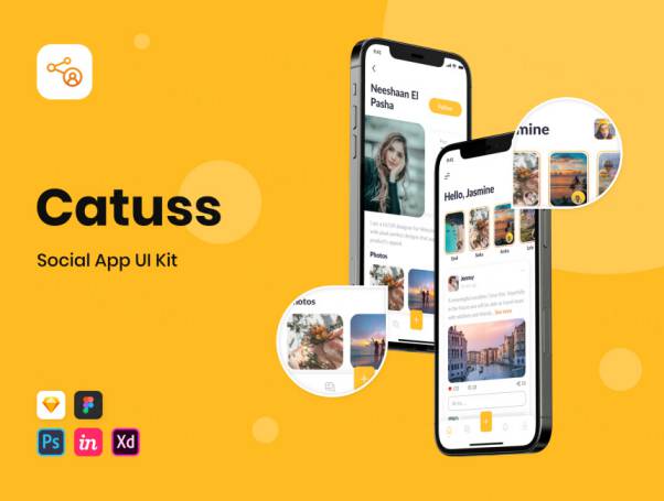 图穷联素材库 » 社交媒体交友通讯APP移动平台UI界面素材 Catuss - Soci