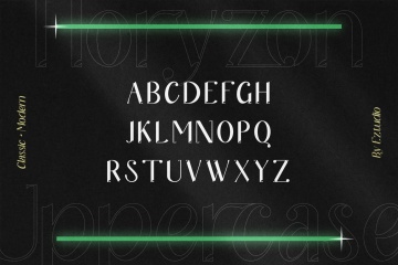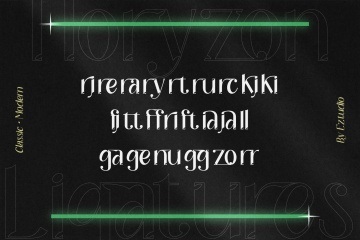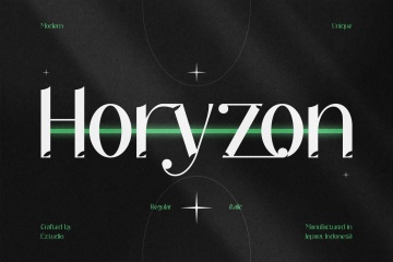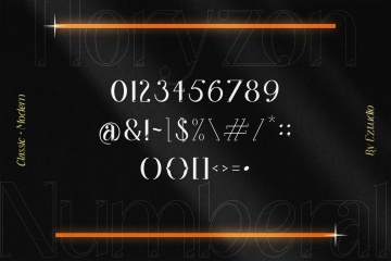 Horyzon 是现代独特的字体,包括大写字母、小写字母、数字、连字和标点符号。此字体还可以与其他字体(如衬线、脚本和手写体)结合使用。此字体适用于平面设计需求,例如:杂志、海报、品牌、服装、电影标题等。