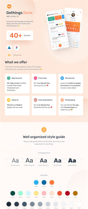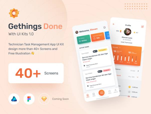 具有40多个移动屏幕+ [免费插图和图标的技术人员任务管理应用程序!]
