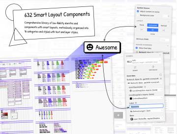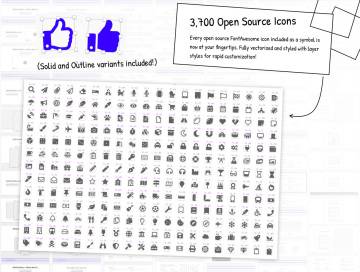 庞大的低保真符号库,具有智能布局,精心组织成16个类别,并以文本和图层样式进行样式设置。