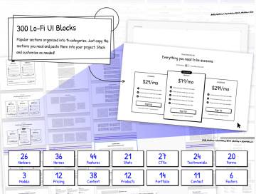 以300多个UI节为基础,这些节分为14个类别。只需复制所需的部分,然后将其粘贴到您的项目中即可。根据需要堆叠和自定义!