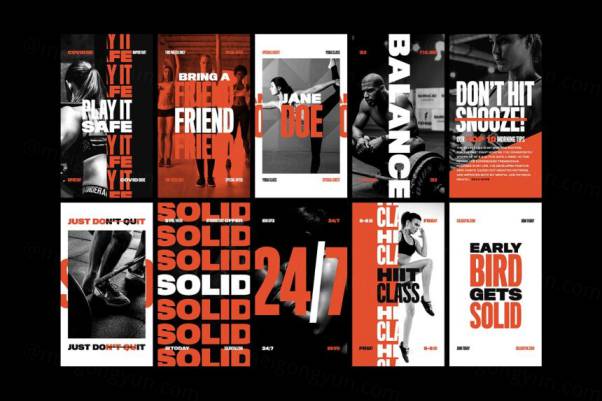 图穷联素材库 » 现代时尚健身运动会所新媒体宣传海报版式模板素材 Solid - Bol