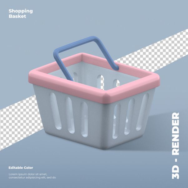 图穷联素材库 » 三维立体超市购物篮图标元素 3d shopping basket ic