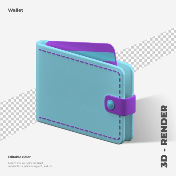 图穷联素材库 » 三维立体钱包图标元素 3d wallet icon rendering