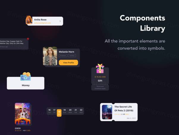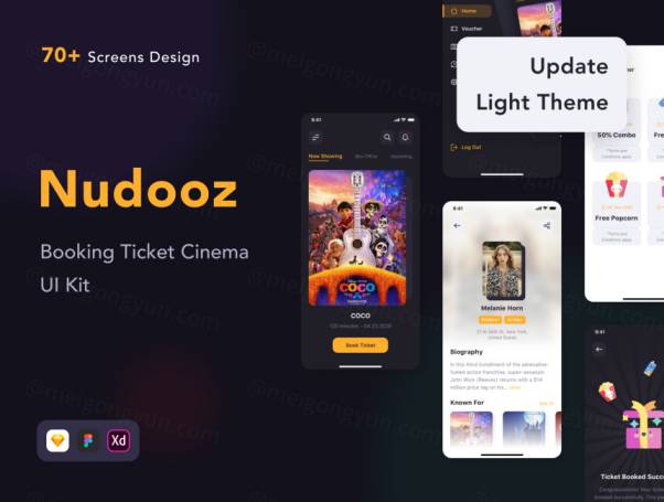 图穷联素材库 » 电影票演唱会门票预定移动APP界面UI素材 Nudooz - Book