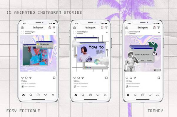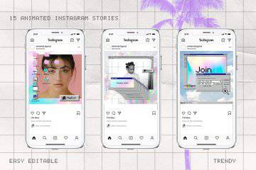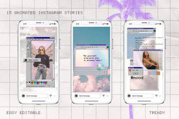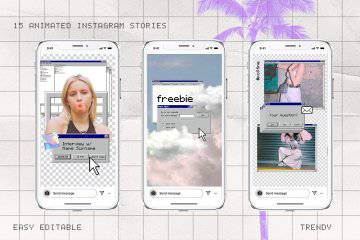 用新的时尚帖子和动画故事给您的 Instagram 粉丝留下深刻印象!有很多 Windows 95 UI 元素带来了一些复古和怀旧的氛围。同时,全息渐变和毛刺纹理使其具有未来感。贴纸、像素化图标和其他装饰元素将使您的提要和故事更加动感和引人注目!非常适合推广您的产品、服务或您自己的博客。