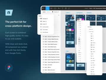 Nartz UI 套件与 Figma 兼容并能顺利运行,具有良好的分层和组织、响应式调整大小、全局颜色和文本样式,以及来自 Google Fonts(Maven Pro 和 Nunito Sans)的免费字体系列。